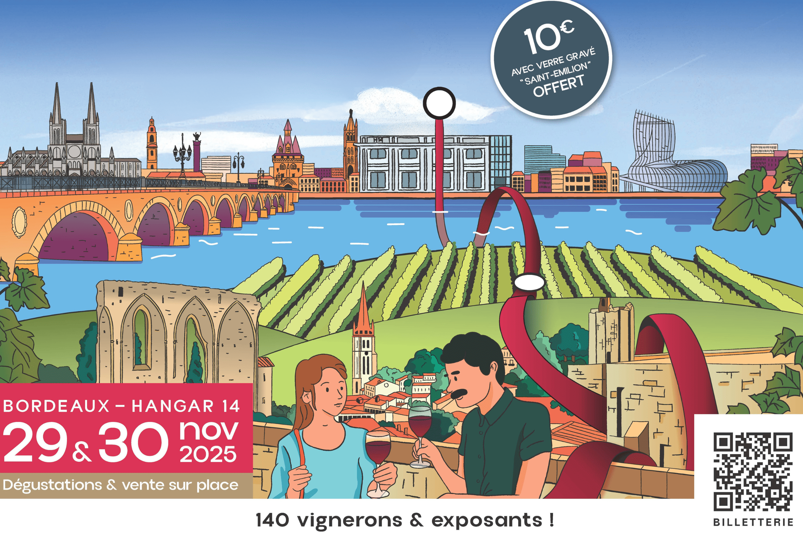 Pour la première fois, nos vignerons posent leurs comptoirs et leurs caisses de vins à Bordeaux les 29 et 30 novembre 2025 pour un grand salon vigneron ! Plus de 140 stands de viticulteurs et viticultrices de nos appellations Lussac Saint-Emilion, Puisseguin Saint-Emilion, Saint-Emilion et Saint-Emilion Grand Cru mais pas que !